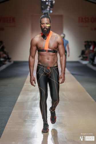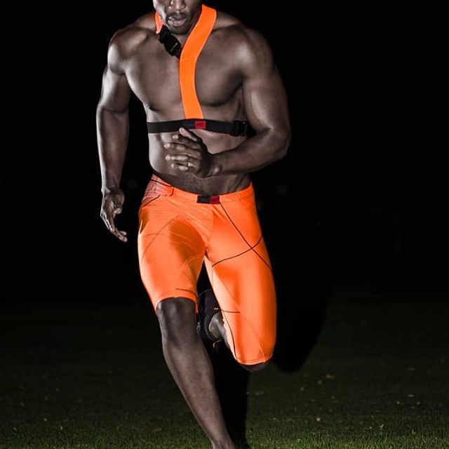 Harness, with bi-colour elastic bands Fabric composition: 100% Nylon Colour: Neon orange with black elastic Sizes: M, Fits all sizes Care instructions: