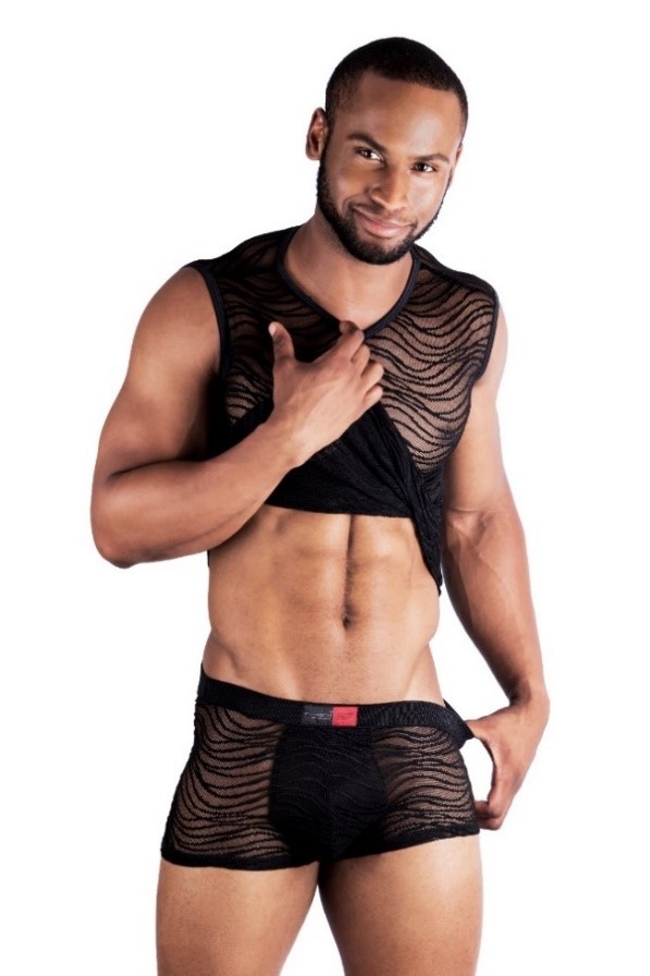 Sleeveless T- shirt, snug-fitting, with a high v-neckline